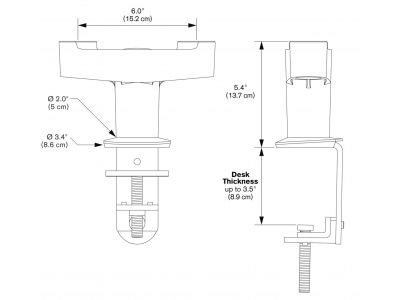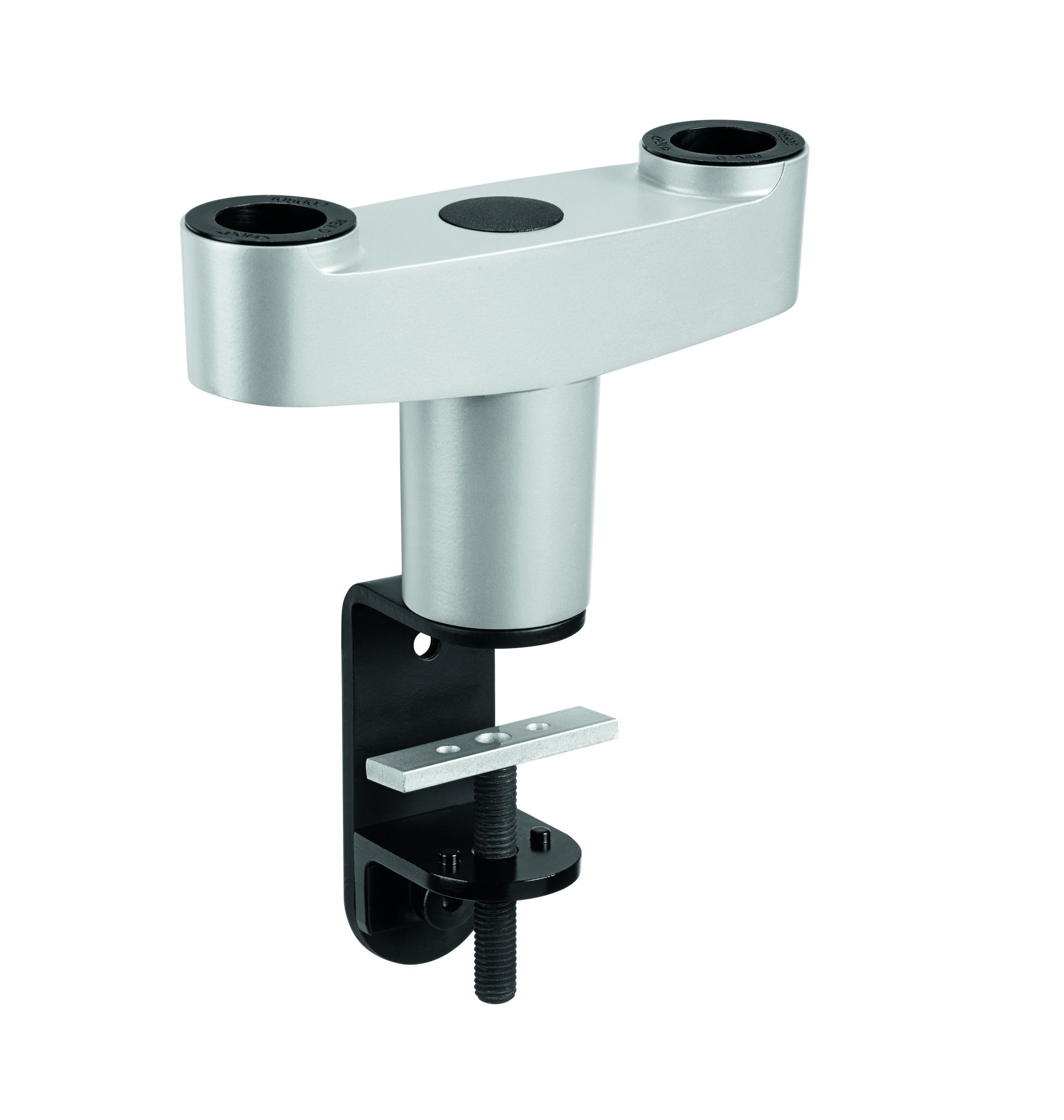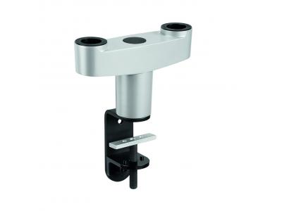 Met de dubbele bureausteunadapter van Vogel's kunt u twee monitorsteunen bevestigen op één punt van uw bureau. Met één hand past u de stand van elke monitor moeiteloos aan. Zo hebt u meer ruimte op uw bureau en meer ergonomisch comfort. De dubbele bureausteun kan aan de rand van het bureau worden geklemd of worden vastgezet met een ring of met een bout door het bureaublad.