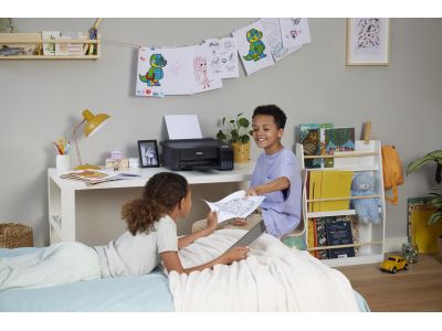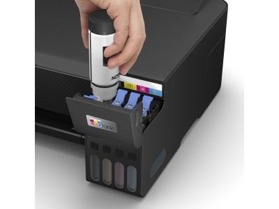 Cartridges behoren tot het verleden Met EcoTank kunt u probleemloos thuis printen. U kunt de inkttanks met zeer hoge capaciteit zonder knoeien bijvullen en de flessen hebben een speciale sluiting waardoor ze alleen op de juiste kleur kunnen worden gebruikt. Op het inktniveauscherm aan de voorzijde kunt u eenvoudig zien wanneer de tank moet worden bijgevuld. Blijf besparen Met deze voordelige printer kunt u tot 90% op uw printkosten besparen1 en hij wordt geleverd met tot drie jaar aan inkt.2 Met één set inktflessen kunnen tot 4500 pagina’s in zwart-wit en 7500 in kleur worden afgedrukt3. Dat komt overeen met 72 cartridges aan inkt!