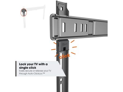 Het doordachte design en de hoogwaardige materialen geven de ELITE Fixed tv-beugel een ongeëvenaard draagvermogen. Dankzij het unieke Auto-ClickLoc™-veiligheidssysteem hang je je tv met een simpele, hoorbare klik veilig vast. Zachte patches op de beugel beschermen de achterzijde van je tv tijdens het monteren.