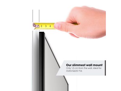 De ELITE Fixed tv-beugel is de platste tv-beugel uit ons assortiment. Het ultraslanke design is volledig afgestemd op de nieuwste tv’s, zoals OLED en QLED tv’s. Hiermee hangt je tv onwaarschijnlijk strak tegen de muur. Precies zoals jij wilt. Met deze ELITE Fixed tv-beugel maak je jouw premium kijkervaring dan ook helemaal compleet.