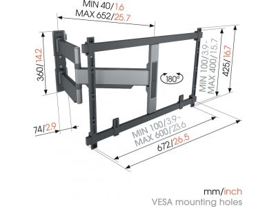 De ELITE Full-Motion+ tv-beugel heeft extra lange draagarmen van 65 cm. Hierdoor is het mogelijk om je tv zowel linksom als rechtsom tot wel 90° te draaien, afhankelijk van je schermgrootte. Zo geniet je optimaal van je tv vanuit elke hoek. Het draaien van je tv gaat uiterst soepel dankzij OneFinger™ Movement. Je kunt het scherm met slechts één vinger in de gewenste kijkhoek zetten. Omdat je dunne, fragiele schermen beter niet kunt kantelen, ontbreekt de kantelfunctie.
