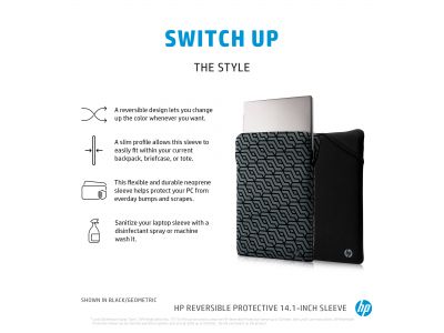 Deze omkeerbare laptophoes is gemaakt van duurzaam neopreen en beschermt uw pc tegen stoten en krassen.