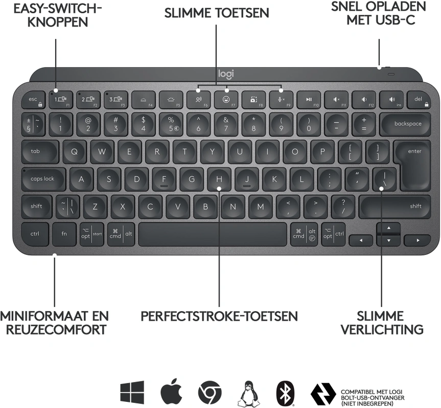 COMPUTER >> Toetsenborden >> Logitech >> MX Keys Mini Minimalistisch, draadloos, verlicht toetsenbord Graphite