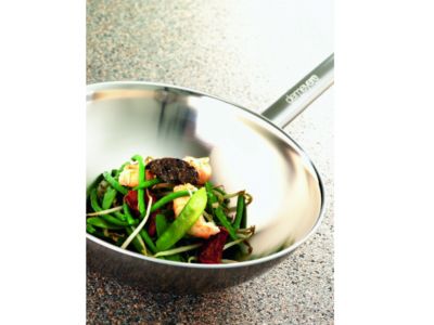 De wok is een prachtig keukengereedschap. Dat weten ze in de oosterse keukens al honderden jaren. Naarmate westerlingen kennis maakten met deze veelzijdige pan werd de interesse ook buiten Azië aangewakkerd. Ondertussen hebben fijnproevers wereldwijd de vele voordelen ontdekt van deze halfronde pan die voor diverse bereidingswijzen geschikt is, zoals roerbakken, stoven, stomen of frituren. De moderne wok van Demeyere garandeert de perfecte warmtespreiding: de wok wordt heet in het midden (230°C) en wordt naar de randen toe geleidelijk koeler.