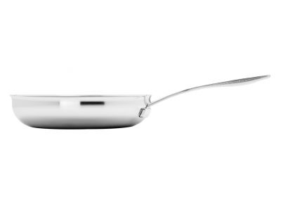 Deze Industry 5 bakpan verspreidt de warmte optimaal en laat smaken optimaal tot hun recht komen. Bij een lekkere chateaubriand bijvoorbeeld, die meteen perfect egaal bakt met een mooie korst. Als basis voor een heerlijke saus kan je de kleine aanbaksels deglaceren. Ook krieltjes geef je in een-twee-drie een heerlijk krokant jasje, in een mix van boter en olie. Dit roestvrijstalen model van 20 cm, robuust vormgegeven in Amerikaanse industriële stijl door de Belgische designer Stefan Schöning, is heel fijn om mee aan de slag te gaan. De pan ligt goed in de hand en is tot aan de rand opgebouwd uit 5-lagenmateriaal. Die solide combinatie van legeringen geleidt vlot de hitte zodat je gelijkmatig en gecontroleerd kan bakken, ook op een zacht vuur. Ideaal op gas maar bijzonder geschikt voor alle kookplaten, ook inductie. Zodra de Industry 5 pan voldoende opgewarmd is, kan je het fornuis een stand lager zetten. De pan houdt de juiste baktemperatuur en bespaart zo energie. Dankzij de speciale Silvinox® technologie verkleurt ze niet en krijg je ze telkens in een-twee-drie weer schoon. Durf je al eens met mes en vork in een pan zitten? Geen stress, dit exemplaar uit onze Industry 5 serie kan er tegen. Nog een voordeel: de stijlvolle roestvrijstalen steel met gezandstraald oppervlak blijft lang koel. Kortom: een blijvende meerwaarde in je keuken.