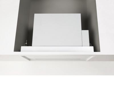- Kantelbare klep in wit glas voor maximale opvang kookdampen