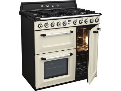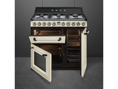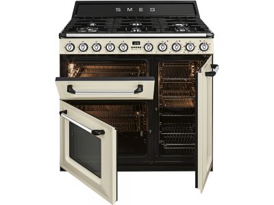 Het fornuis heeft een afmeting van 90 x 60 cm, beschikt over 2 ovens met grillcompartiment, een gaskookplaat met 6 branders.