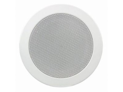 Inbouwluidspreker 100V, slechts een beetje groter dan een halogeenspot. Voorzien van een volledig metalen frame. Witte uitvoering. Ook verkrijgbaar in wit of zilverkleurig.