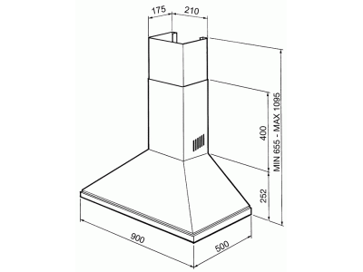 Decoratieve muurdampkap 90 cm - PO 595 m³/u - energieklasse C - inox