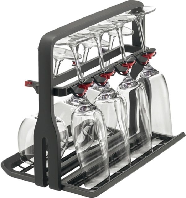De veelzijdige Glass Basket geeft plaats aan maximaal 8 steelglazen. Vouw hem op om ruimte te besparen en plaats maximaal 4 glazen.
