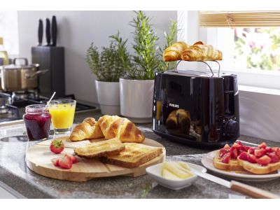 Dit compacte broodrooster wordt geleverd met 8 standen en 2 grote, variabele broodsleuven zodat uw brood regelmatig wordt geroosterd, ongeacht de broodsoort. Met de ingebouwde opzethouder kunt u ook uw favoriete broodjes of gebak opwarmen.