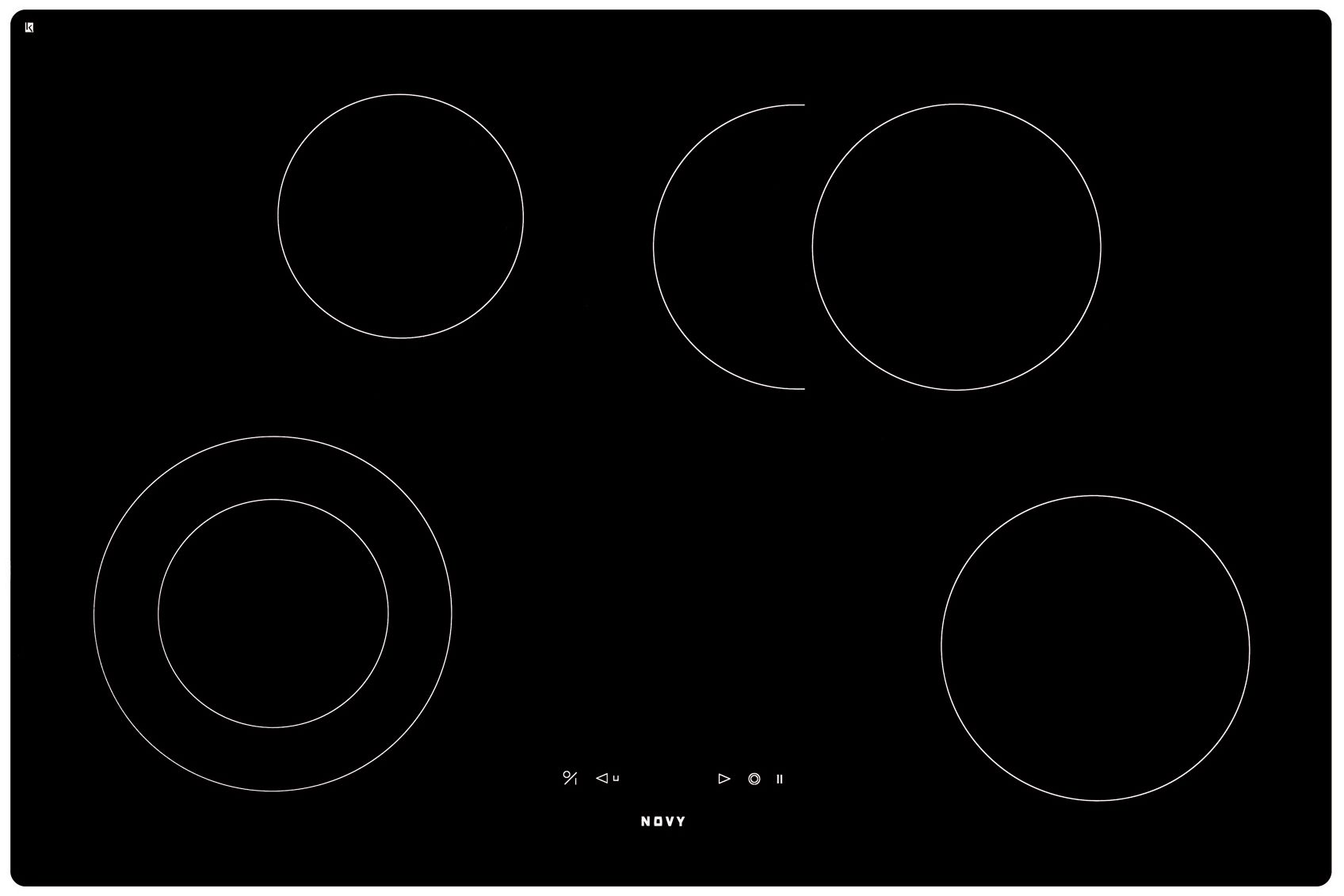 Vitrokeramische kookplaat met 4 kookzones, waarvan de grootte van 2 zones uitgebreid kan worden. Deze kookzones zijn bovendien ook uitgerust met HiLight elementen, die zorgen voor een extreem korte gloeitijd waardoor het koken nog sneller gaat en de warmte zeer gelijkmatig verdeelt wordt. Het toestel is uitgerust met sliderbediening, waarbij je enkel met de vinger over de bediening dient te glijden tot het gewenste niveau is bereikt. Verder beschikt het toestel over een overkookveiligheid, een timer op elke zone, een vergrendeling en een restwarmteaanduiding.