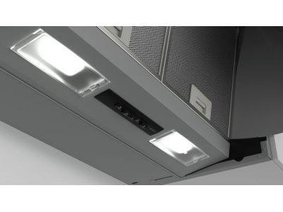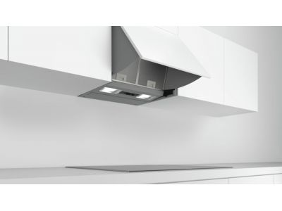 De integreerbare afzuigkap wordt tussen bovenkasten geplaatst waarbij de kap volledig wordt geintegreerd in de keukenopstelling.