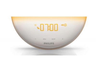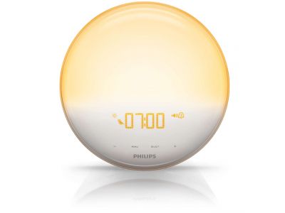De Philips Wake-up Light is geïnspireerd door de zonsopgang en maakt gebruik van een combinatie van licht en geluid om u op een natuurlijke manier te wekken. De kleur van het ochtendlicht verandert van zacht morgenrood via warm oranje naar zonnig geel.