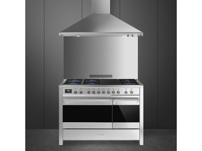Fornuis 120 x 60 x 90 - 6 branders gas + elektr. bbq-grill - 2 ovens (1 multifunctie) - energieklasse A + B - inox