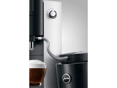 Uw melkslang met roestvrijstalen ommanteling kunt u volgens het meegeleverde informatieblad eenvoudig op uw volautomaat voor koffiespecialiteiten aansluiten.
