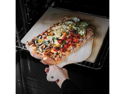 Met de pizzaset van AEG heeft u gourmetkunsten zo onder de knie. Gebruik de veerkrachtige natuursteen als platvorm voor ongeëvenaard bakken. Verplaats de pizza van de steen met de houten spatel. Snij hem met de roestvrijstalen snijder en dien hem op.