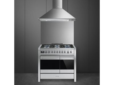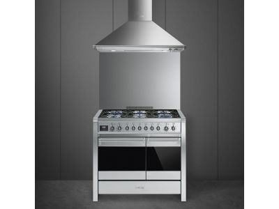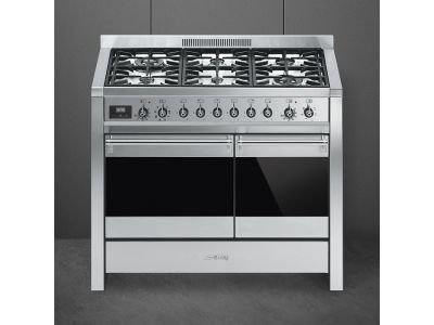 Fornuis 100 x 60 x 90 - 6 branders gas - 2 ovens (1 multifunctie) - energieklasse A - inox