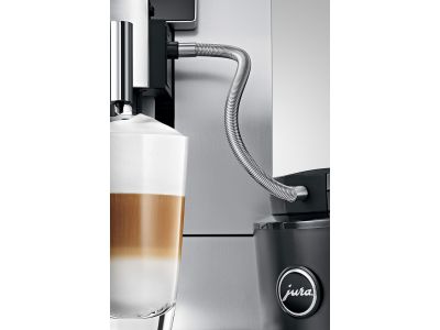Uw melkslang met roestvrijstalen ommanteling kunt u volgens het meegeleverde informatieblad eenvoudig op uw volautomaat voor koffiespecialiteiten aansluiten.