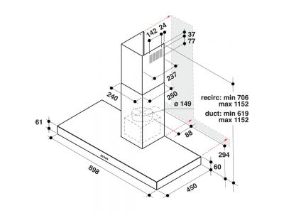 Deze Whirlpool dampkap kan zowel rechtstreeks lucht afvoeren als recirculeren (filter vereist), zodat u volledige vrijheid heeft bij de inrichting van uw keuken.