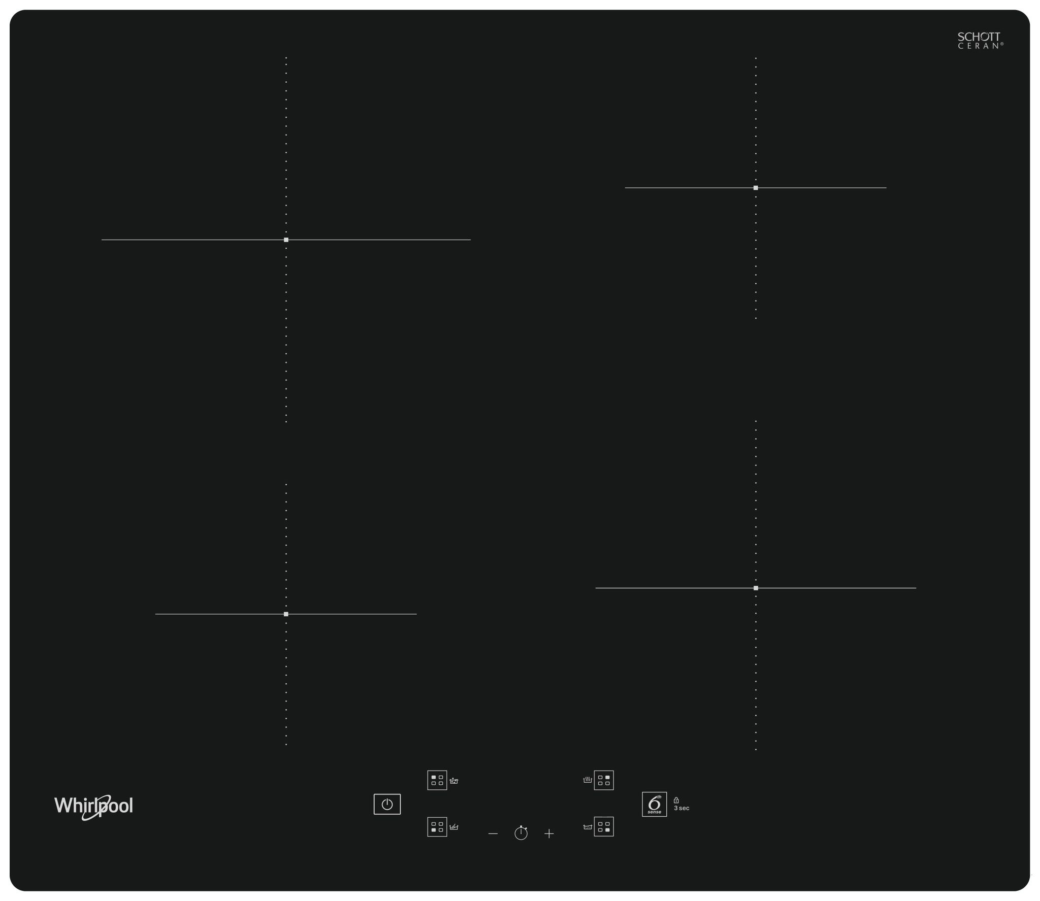 Kenmerken van deze Whirlpool keramische inductiekookplaat: Een elegante technologie die de pan en niet de kookplaat verwarmt, energieverspreiding beperkt en perfecte kookresultaten biedt. Elektrische voeding.