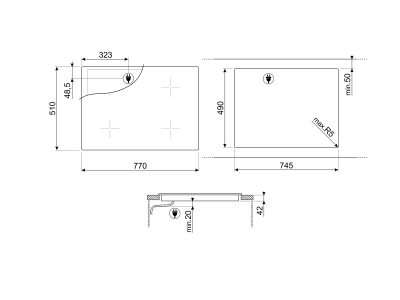 Vitrokeramische kookplaat 77 cm - 4 zones - rechte rand