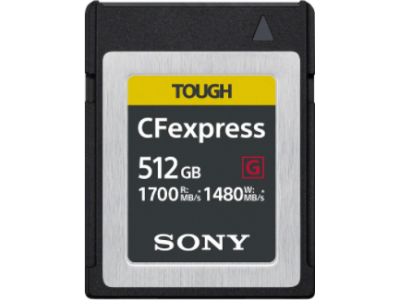 CFexpress Type B-geheugenkaart met een schrijfsnelheid tot 1480 MB/s, een leessnelheid tot 1700 MB/s en een hoge betrouwbaarheid.