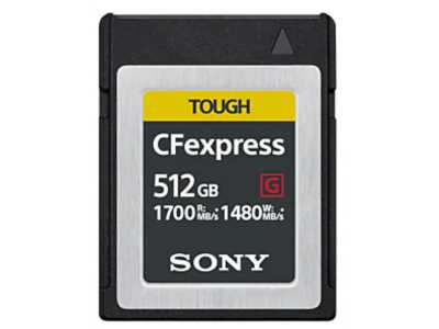CFexpress Type B-geheugenkaart met een schrijfsnelheid tot 1480 MB/s, een leessnelheid tot 1700 MB/s en een hoge betrouwbaarheid.