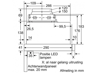 Dampkap iQ100 Telescopisch 60cm - 389m³/u - 67 db - LED verlichting - afwerkingslijst in optie B*