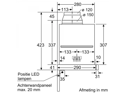 Telescopisch 90cm - 503 / 959m³/u - 57 db - LED verlichting - iQdrive - climateControl Sensor - design afwerkingslijst Zwart