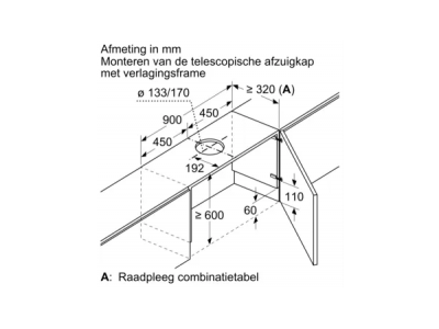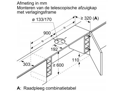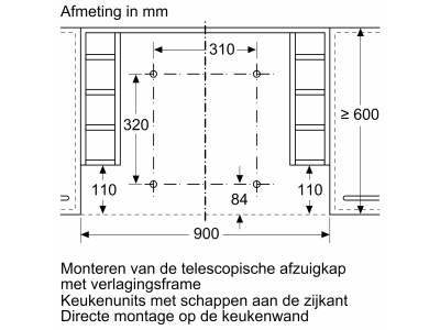 Toebehoren Neerlaatkader voor telescopische dampkap 90 cm