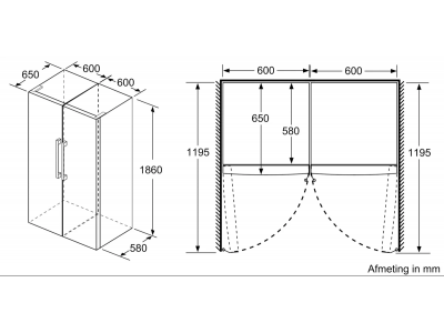 Diepvriezer - vrijstaand Kastmodel noFrost Diepvr.242 l ****, digitale elektronica, 186x60x65 cm, te combineren met KS36VAXEP Zwarte inox deuren antiFingerprint