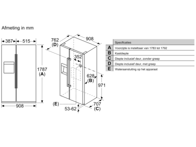 Type koelkast : | Side-by-side (Amerikaans) |