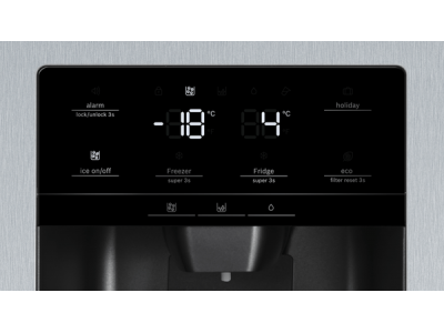 De side-by-side koel-vriescombinatie met NoFrost en indoor elektronica: beschikt over een modern deurdisplay en maakt ontdooien overbodig.