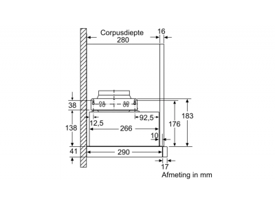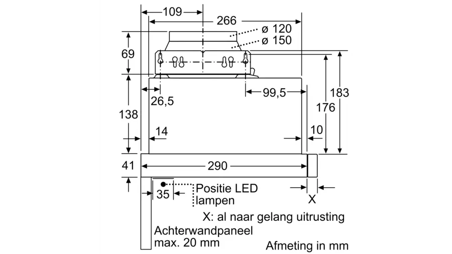 Dampkap Serie 2 Telescopisch 60cm - 328m³/u - 64db - LED-verlichting -afwerkingslijst in optie Metaalgrijs C