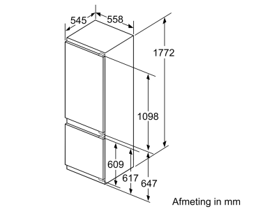 Integreerbare koel-vriescombinatie met bottom-freezer, 177.2 x 55.8 cm