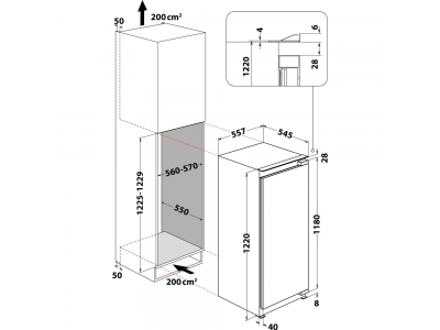 Deze koelkast is zeer makkelijk te monteren; door SETMO-Quick past uw oude kastfront gemakkelijk op het nieuwe apparaat. Hierdoor kan deze koelkast in de helft van de tijd worden geïnstalleerd. Alle bevestigingsmiddelen zijn voorgemonteerd en kunnen eenvoudig worden aangepast.