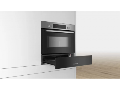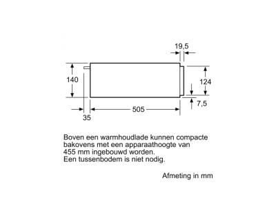 De multifunctionele warmhoudlade voor een 14 cm nis: voor het voorverwarmen van borden en het warmhouden van gerechten.