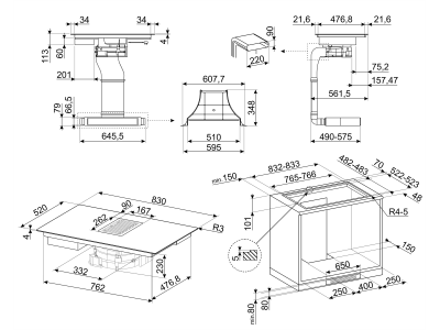 KITCHEN >> Kookplaat met afzuiging >> Smeg >> Universeel Inductiekookplaat met geïntegreerde afzuiging 80cm HOBD482D