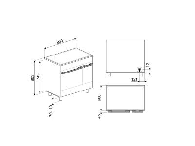 Fornuis 90 x 60 x 90 - 5 inductiezones - 2 ovens multifunctie - energieklasse A - antraciet
