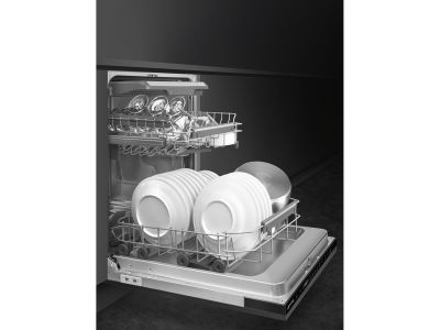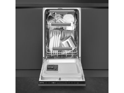 Vaatwasser integreerbaar - breedte 45 cm - 10 bestekken - 44 dB(A) - 9,9 l/cyclus - energieklasse D - standaard wassysteem - besteklade - installatie op hoogte mogelijk