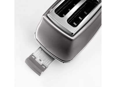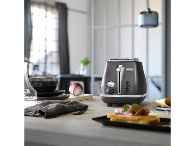 De De'Longhi Icona Metallics 2-sneetjes broodrooster biedt al het gemak dat je nodig hebt in een aantrekkelijke verpakking. Verwarm, ontdooi en rooster uw brood tot het gewenste niveau met behulp van de geïntegreerde elektronische bediening met een 6-standen progressieve bruiningsknop. De glanzende grijze afwerking van deze broodrooster geeft uw keuken een modern vleugje klasse.