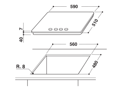 Gaskookplaat, 60cm, 4 branders/1 wok, 2 gietijzeren pannendragers, iXelium™ RVS