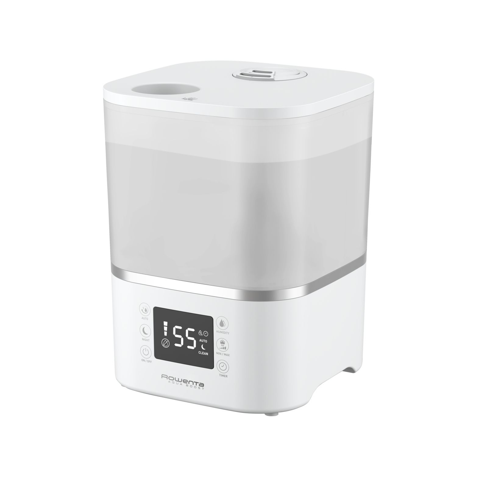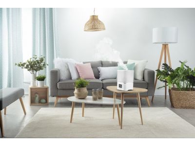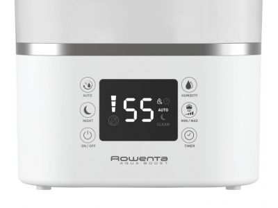 Als het om droge lucht in huis gaat, heeft Rowenta de oplossing: de nieuwe Aqua Boost luchtbevochtiger. De sterke nevelafgifte in combinatie met de 360 ° luchtuitlaten zorgen voor een snelle en homogene bevochtiging om in een mum van tijd de gewenste luchtvochtigheid in huis te bereiken. De nieuwe top filler zorgt ervoor dat je het apparaat in één keer kan vullen en zorgt voor gemakkelijk onderhoud. De antibacteriële werking zorgt ervoor dat 99,9% van de bacteriën in de waterdruppels worden gedood * - wat zorgt voor een schonere nevel. Deze luchtbevochtiger voor thuis biedt een bereik tot wel 50 m2 en beschikt zelfs over een slimme vochtigheidsregeling die automatisch het optimale luchtvochtigheidsniveau handhaaft - een perfecte oplossing voor een kinder- of babykamer. En last but not least: het ultrastille ontwerp en de hoge autonomie zorgen voor een krachtige luchtbevochtiging gedurende de hele nacht, zonder er wakker van te worden!