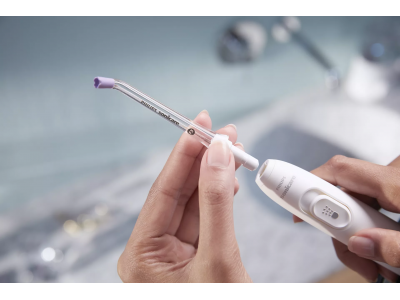 Voor een maximale dekking en extra grondige reiniging gebruikt u het Quad Stream-opzetstuk om het water te concentreren in vier brede stralen tussen de tanden en langs de tandvleesrand. De zachte rubberen geleider spaart uw tandvlees en elk opzetstuk is in een handomdraai te bevestigen en te verwijderen.