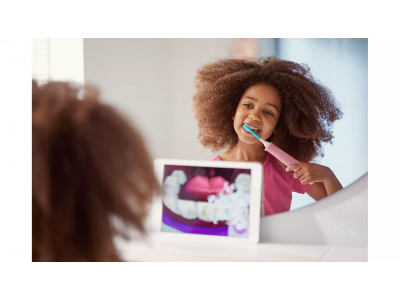 Met de Philips Sonicare For Kids-tandenborstel en app kunnen kinderen leren hoe ze goed zelfstandig kunnen poetsen. De app synchroniseert met de sonische tandenborstel van uw kind via Bluetooth, laat de juiste poetstechieken zien en volgt de prestaties. Kinderen kunnen zien hoe goed ze poetsen en fantastische beloningen verdienen. Educatief en effectief; 98% van de ondervraagde ouders geeft aan dat het gemakkelijker is om de kinderen langer en beter te laten poetsen. Het is een leuke manier om kinderen goede mondverzorgingsgewoonten te laten ontwikkelen waar ze hun leven lang van profiteren.
