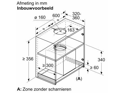 Geïntegreerde blokdesign schouwkap, 60 cm, Zwart