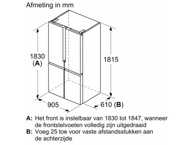 HomeConnect via WiFi, koelkast 405 l, diepvries 200 l****, hyperFresh, 183x91x73,1 cm