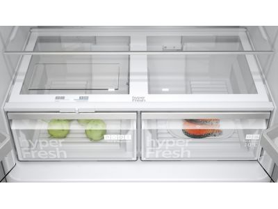 French door met cross door en hyperFresh systeem: de perfecte condities om zowel vis en vlees als groenten en fruit vers te houden.
