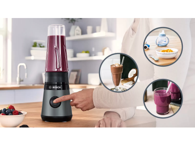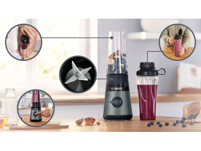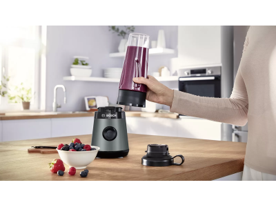 De compacte en krachtige miniblender van Bosch, met Tritan ToGo fles. Geniet onderweg van van gezonde smoothies zonder klontjes of morsen.